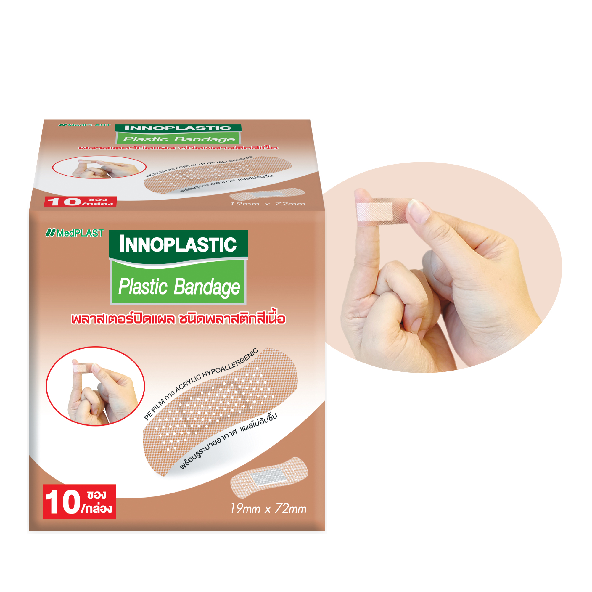 INNOPLAST Plastic Bandage – พลาสเตอร์ปิดแผล ชนิดพลาสติกสีเนื้อ (กล่อง 10 ซอง)