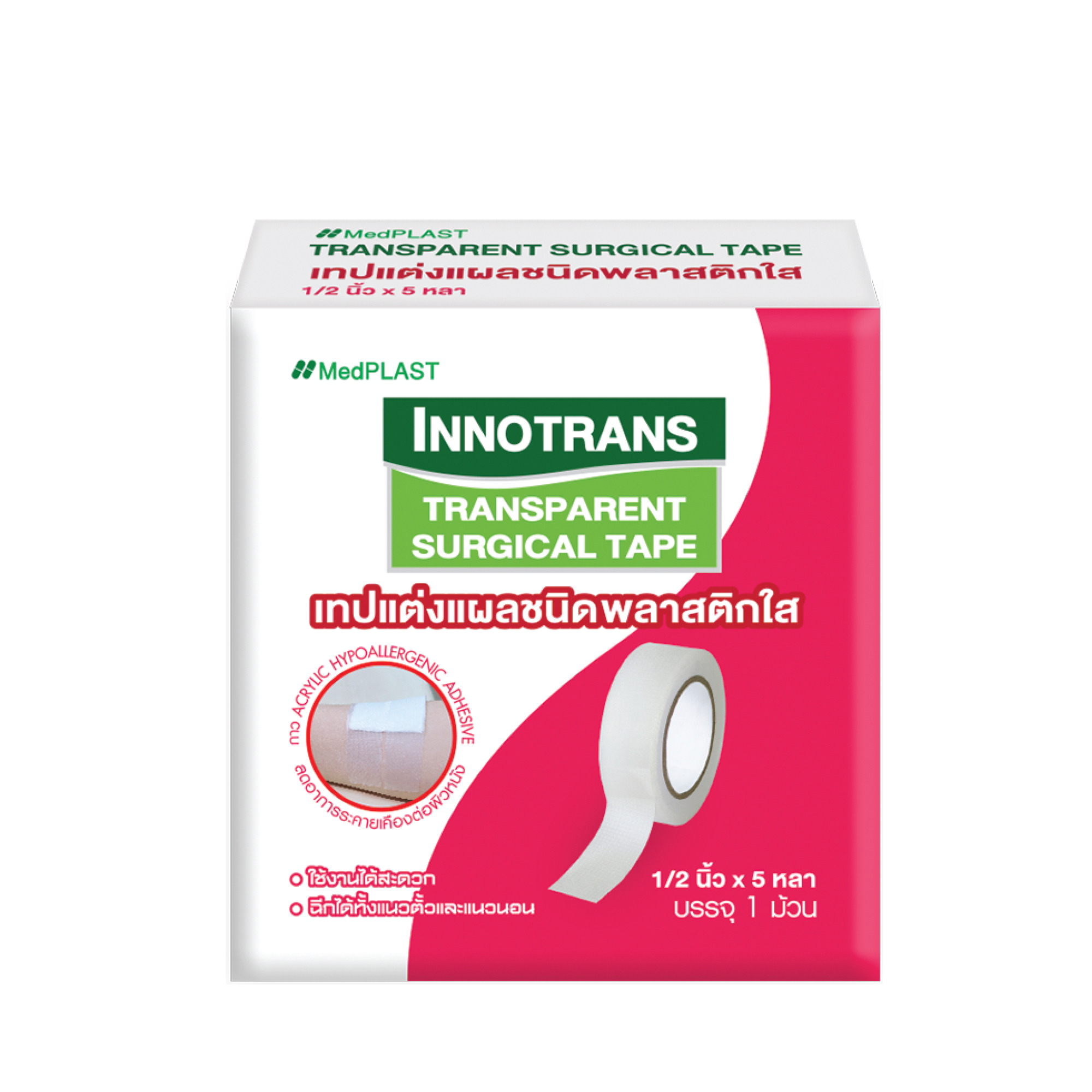 INNOTRANS Transparent Surgical Tape – เทปแต่งแผลชนิดพลาสติกใส – ขนาด 1/2 นิ้ว x 5 หลา (1 ม้วน)